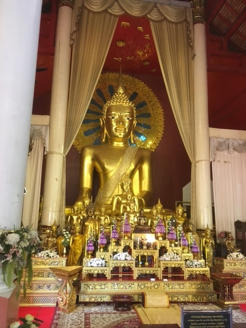 のワット・チェット・ヨートは旧市街との外で西北のエリアにあります。スーパー・ハイウェイ沿いです。旧市街にある有名寺院に比べると交通が少し不便なためか、観光客の喧騒がなく、樹木も多くて落ち着いた気分にさせてくれる寺院。チェット ヨートは7つの尖塔という意味です。このお寺は巳年の人がお参りに行くといいようです。
