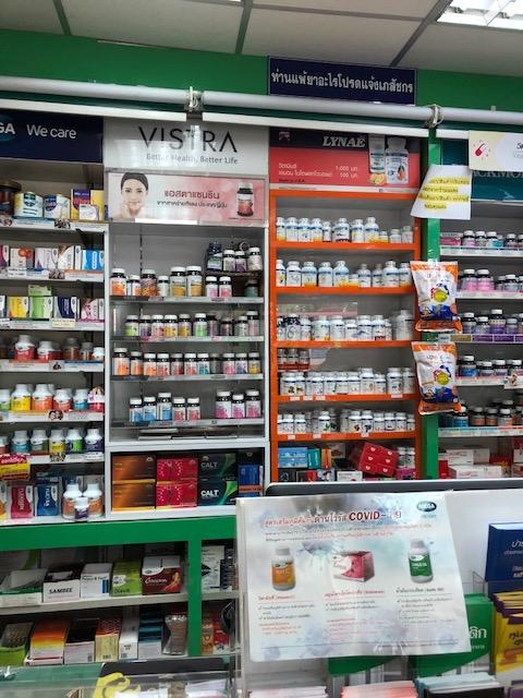 薬を安く買えるおすすめの薬局です。場所はBTSのサラデーンで降りて、ラマ4世通り方面に向かいまう。交差点を左折してクラウンプラザホテルの前を通り過ぎて左手にあります。向かい側にはチュラロンコンの病院があるので薬局が4-5軒ならんであり、ちょっとした薬問屋のようです。