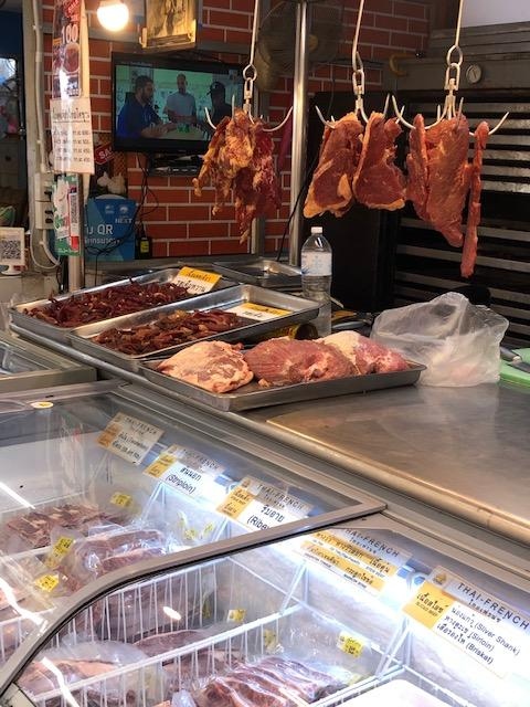 場所はBTSサラデェーン駅を降りてパッポン1通りに向かいます。シーロム側から入るとスリウォンとのちょうど中間くらい、右手にあります。ここのカオソーイは木曜日限定で提供されており、昼過ぎに行くと売り切れの場合がたびたびあります。鶏のカオソーイには手羽元がひとつ入っているのが普通ですが、ここのカオソーイは鶏肉の切り身が入っています。とても食べやすいです。一杯60バーツ。是非、木曜日の昼前に行き、食べてください。