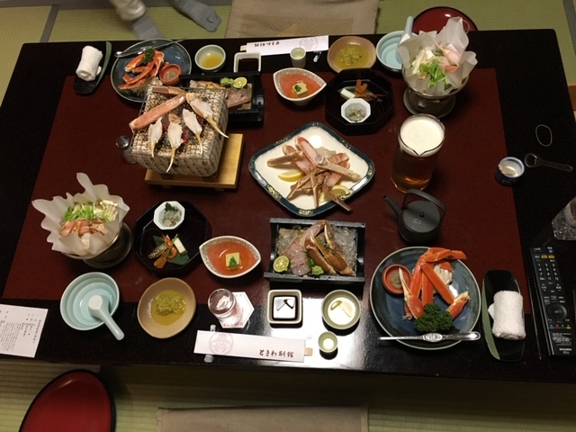 ときわ別館は城崎の少し奥まったところにある閑静な宿です。大きな敷地に20数室の客室で非常に静かです。客室からは日本庭園を眺めることができます。露天風呂付の大浴場にはナトリウム・カルシウムー塩化物高温泉が張られています。露天風呂付の客室もありますよ。冬の料理はカニのフルコース、とても豪華でおいしかったですよ。
