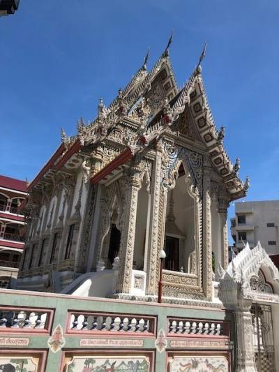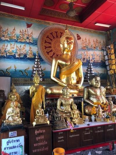 BTSプナウィティ駅を進行方向に向かって左側におり、少し戻りSOI101を右に曲がり約10分ぐらい歩くとWAT DHAMMAMONGKOLのサインがあります。そこを右に曲がり更に歩くとお寺があります。お寺にはりっぱな仏塔があります。このお寺は瞑想で有名で多くのタイ人の方が修行をされていました。