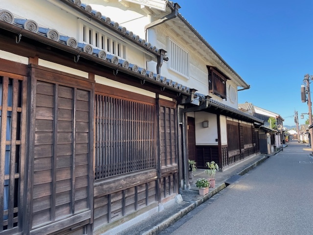 江戸時代の古民家が立ち並ぶ町並みは見通しの利くものはなく、ほとんどが道が屈折させてあります。これは、敵の侵入に備えて、遠見、見通し、弓矢・鉄砲の射ち通しを不可能するためです。まるで城塞都市のような造りになっています。