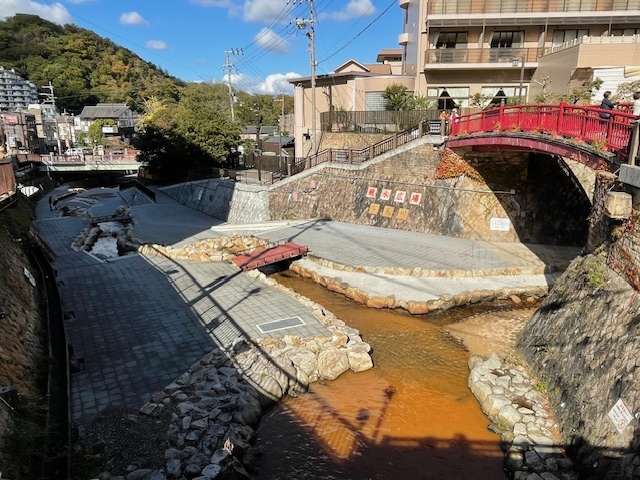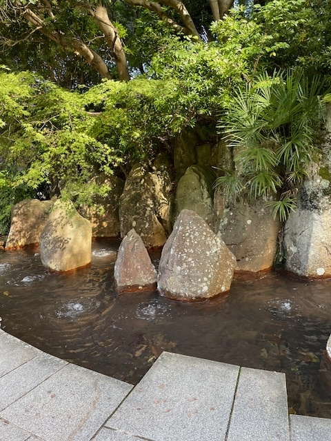 有馬の7つの源泉の一つです。神社のような建物の中央の丸い石からこんこんと冷たい炭酸水が湧き出ています。有馬炭酸源泉広場の石組みの池からボコボコと炭酸泉が噴き出ています。有馬名物炭酸せんべいのおこりも、この炭酸泉を利用したことからです。