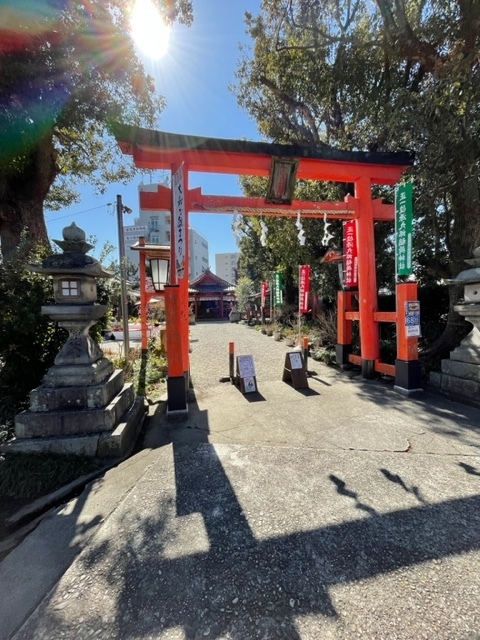 日本三大稲荷の一つに数えられ、歌舞伎や文楽の「義経千本桜」に登場する「源九郎狐」をお祀りする神社です。大和大納言・豊臣秀長が郡山城の鎮守として創建しました。五穀豊穣、商売繁盛の神様として人気があります。