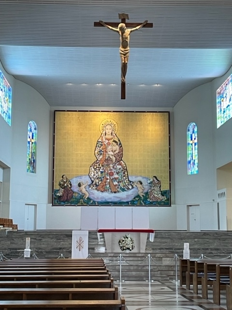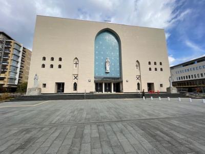 高槻は、キリシタン大名の高山右近ゆかりの地。高槻城主であった右近は、徳川家康のキリシタン禁制が配布された際にマニラに追放され、そこで生涯を終えています。その右近の臨終の地のマニラ郊外アンテイポロにある聖母大聖堂を模して建てられたのが、高山右近記念聖堂。聖堂の前庭には、マニラの修道会の総長から送られた大理石の右近像があります。