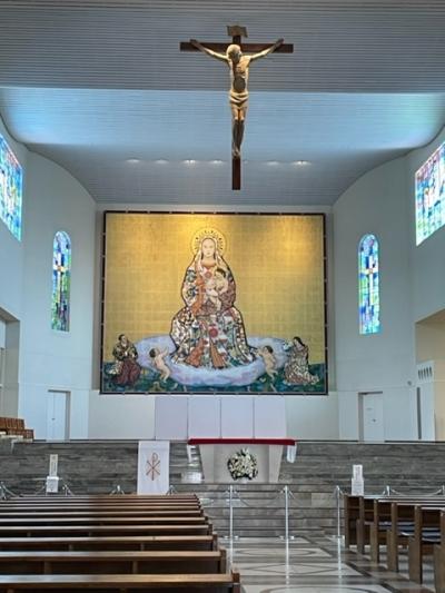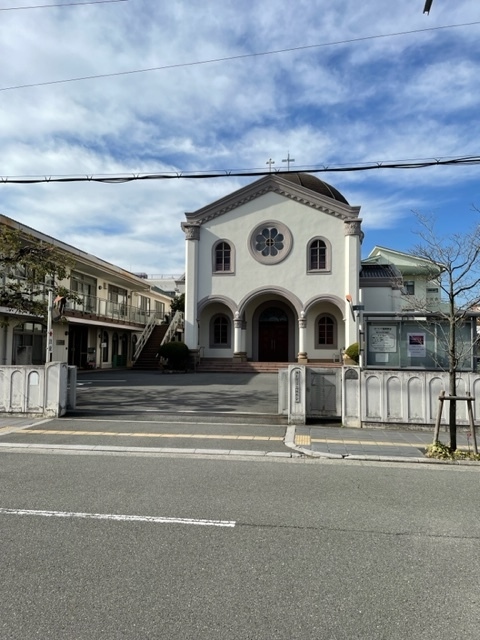 敷地が細川大名家の屋敷跡であったことから、大聖堂前広場には細川ガラシャとキリシタン大名・高山右近の石像がたたずんでいる。ミサがないときは内部を見ることが出来る。約100個の窓はステンドグラスで、イエスキリストと聖母マリアの生涯が描かれている。