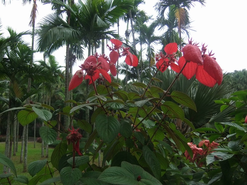 西双版納最終日は冷たい雨が降る中を植物園見学。広い敷地で空いている。雨でも客が居ない訳じゃない。ツアーガイドは花の説明にも詳しい。火焔樹のネームプレートを見つけた。バンコクやカンチャナブリで見た火焔樹とは様子が違う。