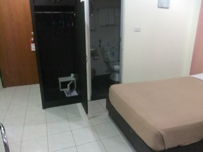 最初案内された302号室は大きな窓をおおうようにテント生地の幕が張られている。しかも通りの騒音がすさまじい。翌日部屋の交換の申し出に快く応対してくれた。409号室はグランド・タワー・インの玄関とプールが見える。静か。- 旅行時期