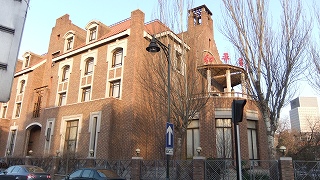 陸南道74号。1937年の建築物。天津出身の実業家李勉之の元住居。ドイツ式庭付き1戸建て。フリー誌JIN1206号p.29より参照追記。