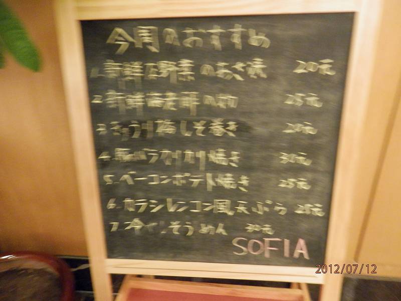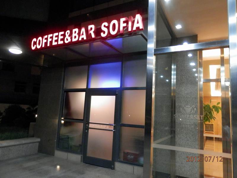 天津博物館まえの噴水ショーを見に来た時の夕食に利用したカフェバーSOFIA。ホテルロビーからも入れるし外からの出入り口もある。ホテルロビーはぜんぜん優雅さがない。ごちゃごちゃした雰囲気。ハングル文字の案内があったから利用者に韓国人が多いのでしょう。去年までは小さなスーパーが有ったらしいが閉鎖した。