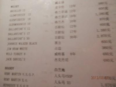 同じビールをスーパーで見つけて飲んだが、この店で注いでもらって飲む方が美味しい。ボトルキープした。ジョニ黒が無くてジャック・ダニエル。口当たりが甘いと思う。水割りを頼んだら思い切り薄いようだ。- 旅行時期