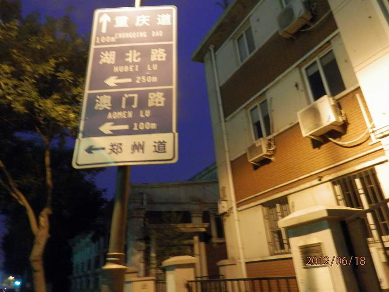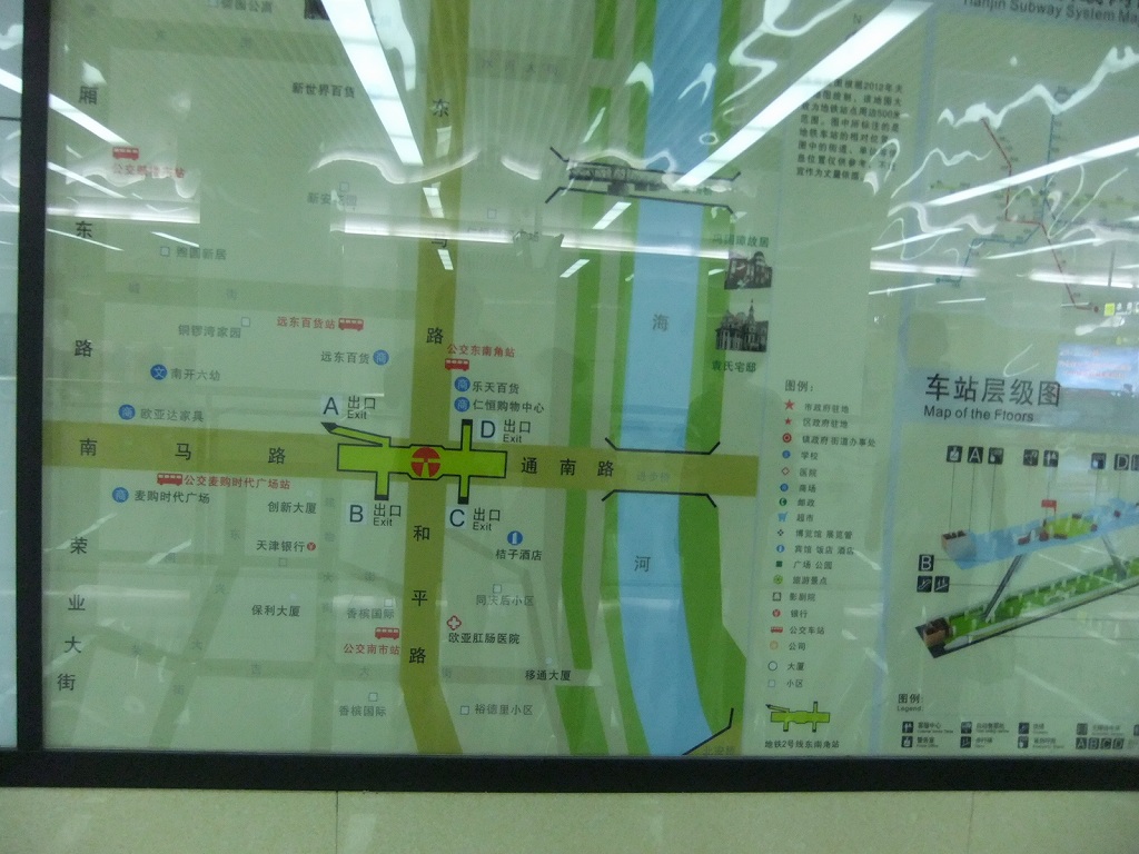 地下鉄2号線東南角駅を降りて、地元民は楽天百貨ロッテデパートを目指すようだが。自分たちは未開通の建国道駅、天津駅を目指す。通南路を東に進む。迅歩橋を渡る。