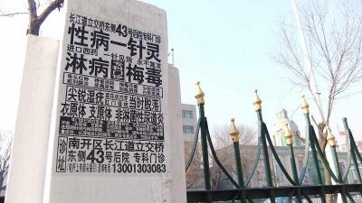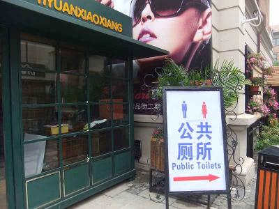 南開区紅旗路沿いからも利用できる長虹公園敷地内のトイレ。入るときは気付かなかったけれども、トイレから出たら目の前にあった宣伝文句。他の公衆便所では見掛けない。係員が常駐している公衆便所では貼らないのかも知れない。