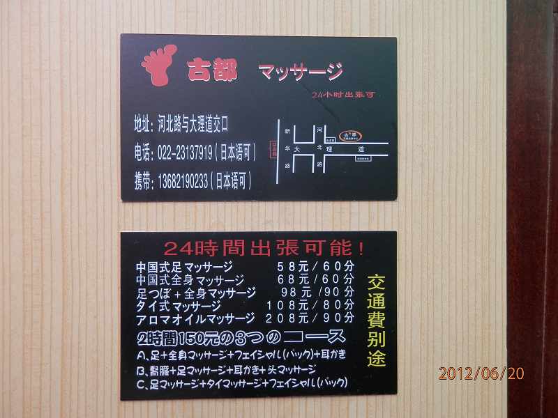 下瓦房駅までわざわざ地下鉄に乗って出掛けたり、遠出の散歩で寄ったりしたマッサージ店古都。4回目は移転したばかりの所に出くわした。営業は翌日の予定だがすでにその2日前から開始した。