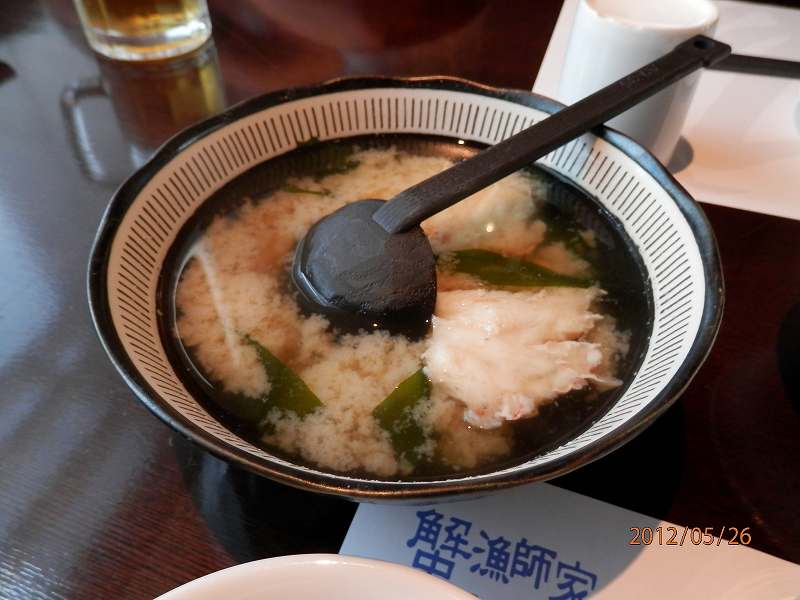 蟹の専門店とうたっている。チェーン店が展開されている。昼に出掛けた。窓際に通されたが特に景色がいいわけじゃない。離れた高い建物の壁だ。蟹の味噌汁2人分は丼で来た。3人前はある。