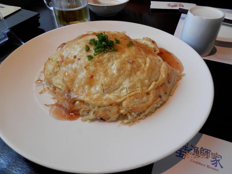 カニ炒飯は2人では多い。上に乗った卵焼きは絵ではトロトロのおいしそうだったのに。しかも半分側は塩が濃かった。前夜、自分はおいしいカニを焼いて食べたばかりだから少し残念。店が入る場所代があって高く感じる。
