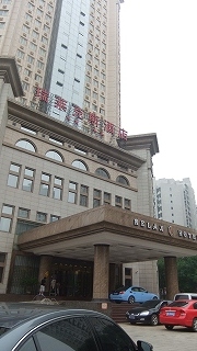 前はリラックスホテル。すが瓦斯のすだったのが印象に残る。今は眠山飯店。眠山は九賽溝の事らしい。道路向うは第一中学。中高一貫校らしい。広い敷地で大きな建物が並ぶ。