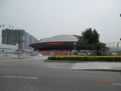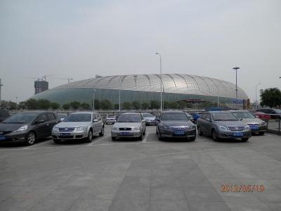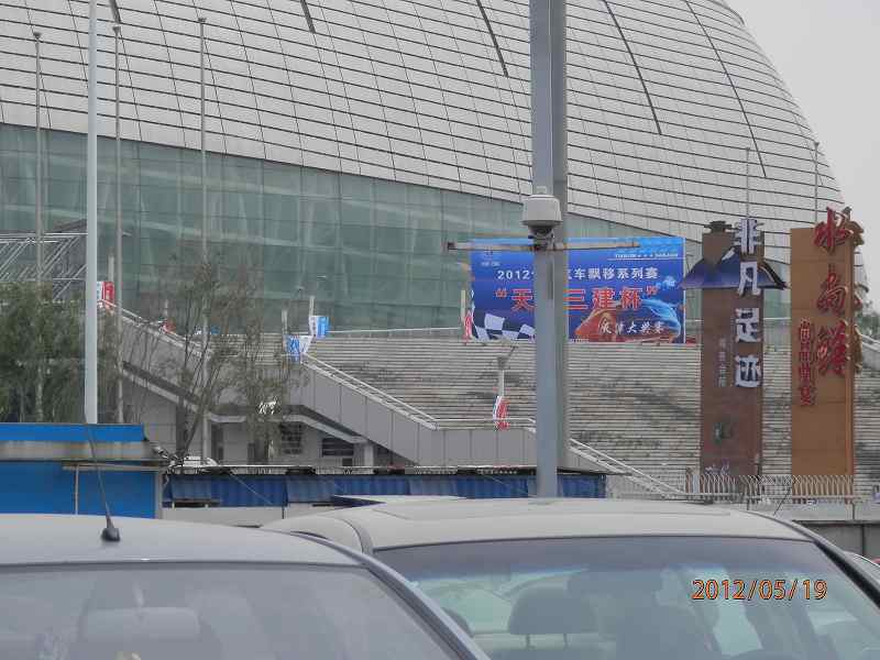 天津奥林匹克中心体育場。北京オリンピックにてのサッカー競技場の1つとして建造された。隣接する水上公園の水と緑に合わせて「水滴」という愛称がついている。スポーツ、コンサート、展示会などに利用される。