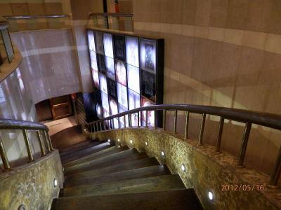 国際大廈のうらにあるというタイ料理店を探す時にあったレストラン。階段を上がって入る。男の人が階下のテーブルに付いて様子を見ている。
