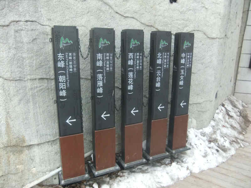 山並みに沿って登ったり急降下するような崋山の西ロープウエーの景観に感動の連続で声が上がる 。ガイドと南峰まで足を延ばして歩いたが結構な距離。