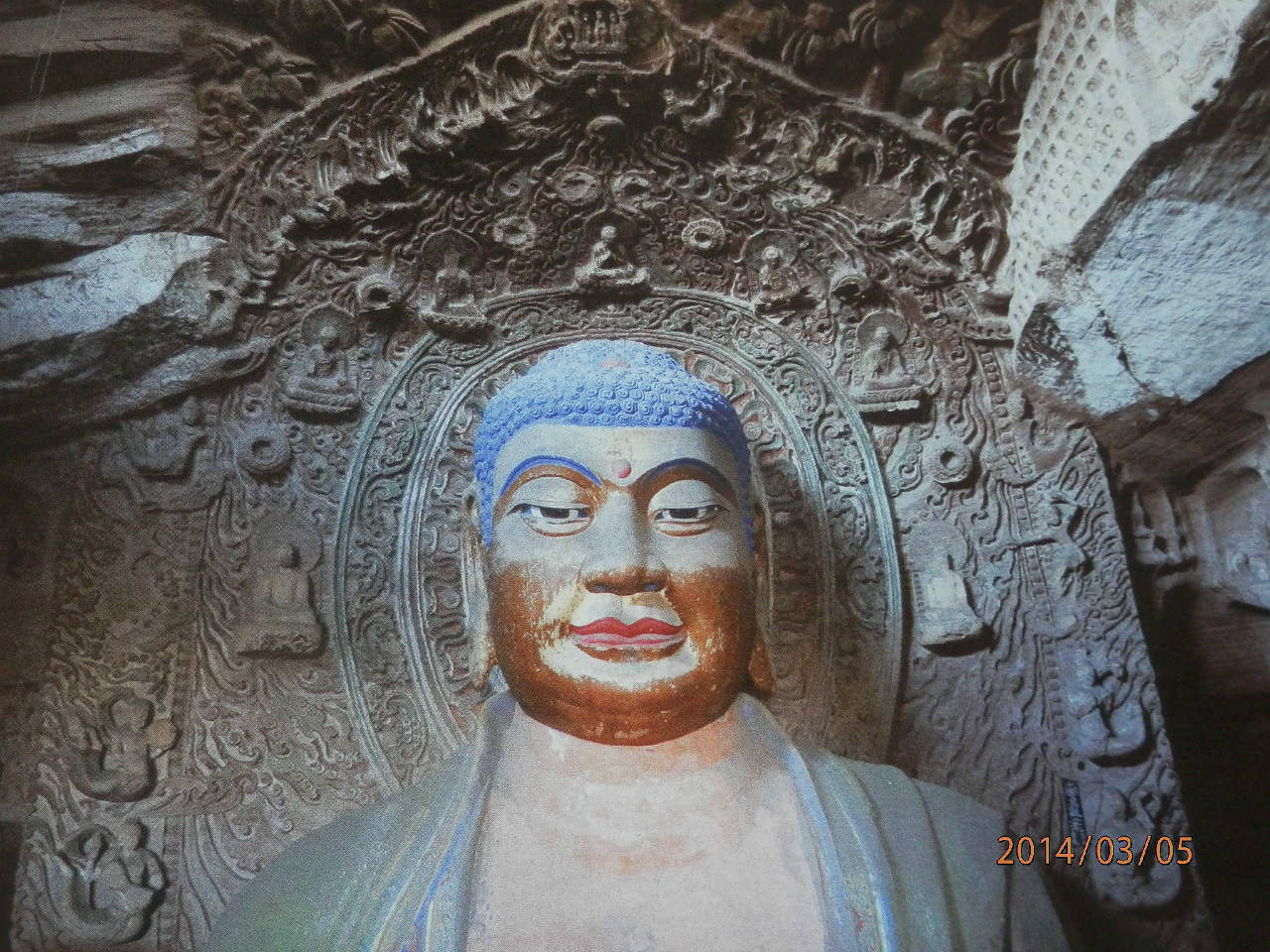 今は4階建ての寺の中にあるから外から見えない。顔は1924年外国人が撮影した写真をもとにして復元された。