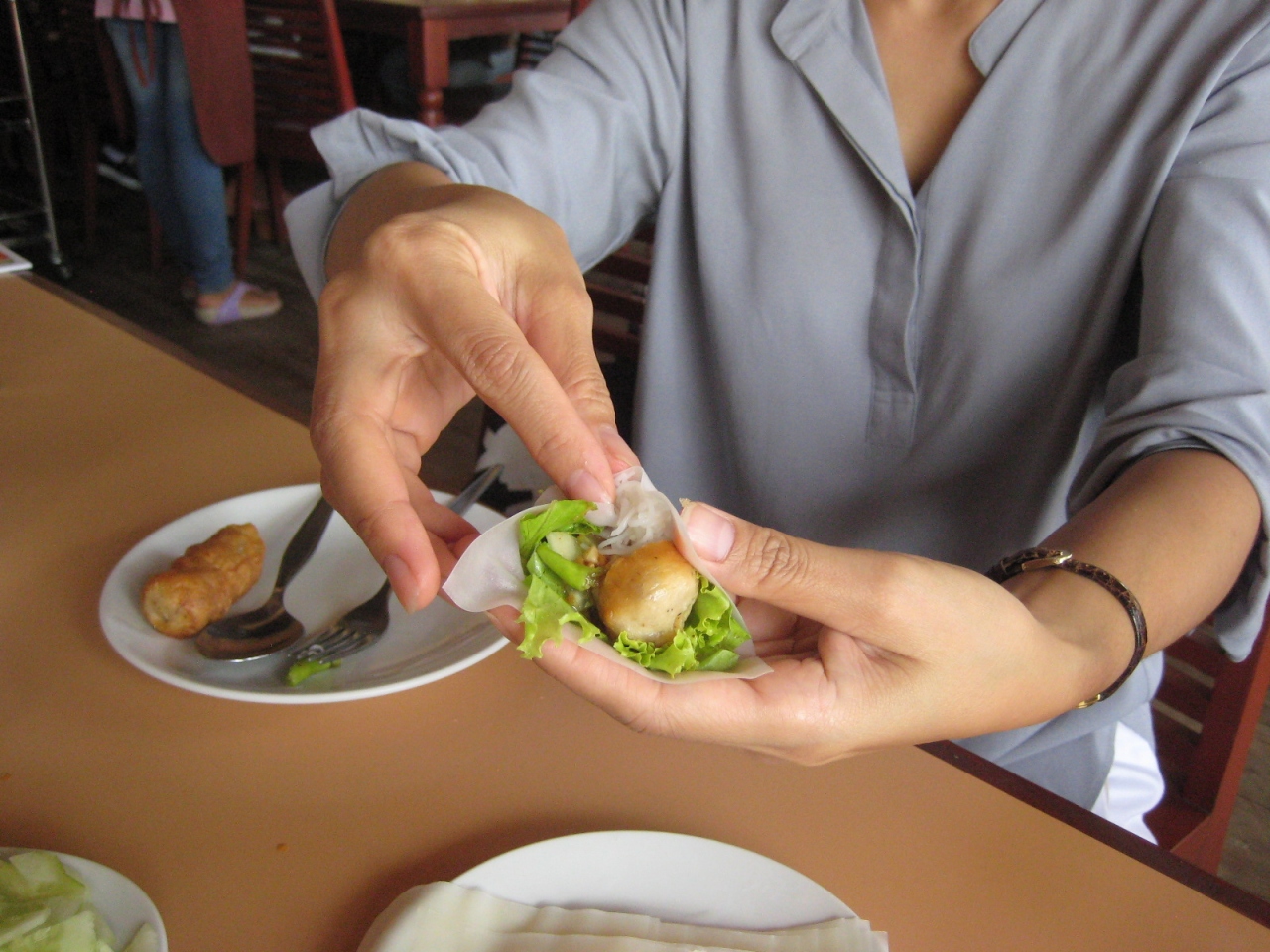ホテル周辺のお店はやや高いような気がするが、タイ、中華、ベトナム、インドなどといろいろある。