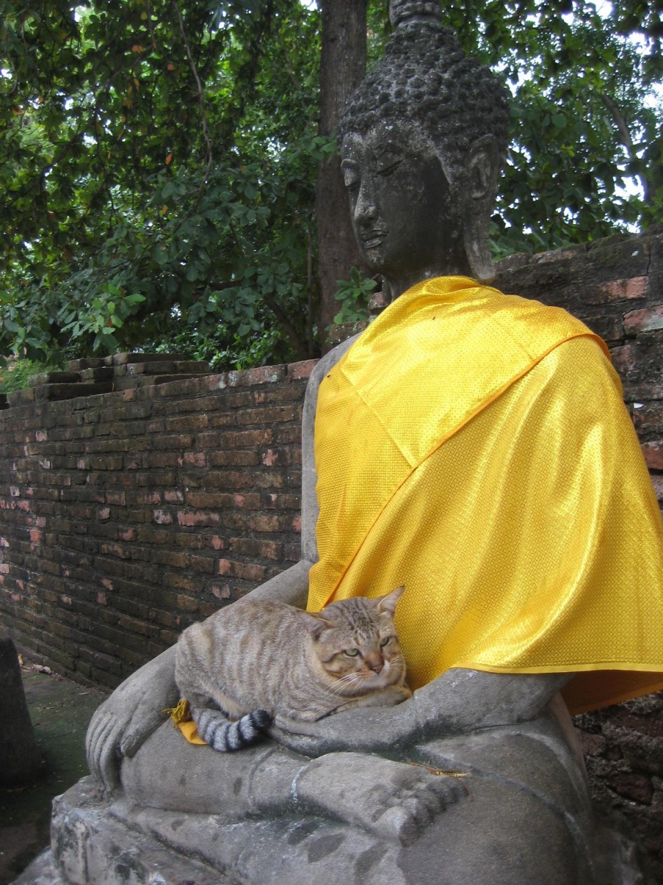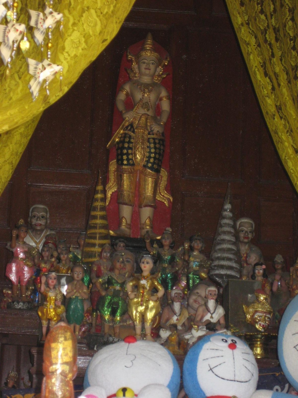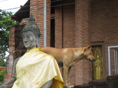 お寺はあまり興味がないのだけど、、、。よく見ると面白いものがあった。タイ人はお寺に犬や猫を捨てに来る。犬や猫もお寺ではいじめられたりしないから伸び伸びしている。ドラえもんもここでは大切にされている???
