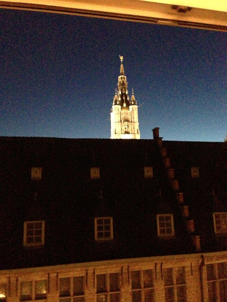 私達が泊まった部屋からは世界遺産の鐘楼がみえ、カリヨンの音色を聴きながら眠りにつきました。なんとも贅沢な経験で、ママは「寝むるのがもったいないわ」と言っていた位。バスルームは部屋と同じ位の広さで、ドアを開けた瞬間驚きました。