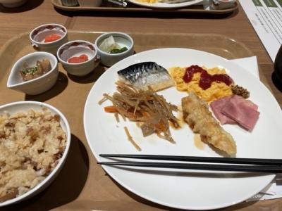 ビュッフェ形式で提供されます。大分料理は、鶏めし、リュウキュウ、鳥天、ダゴ汁がありました。鶏めしは大分でも甘い方だと感じました。鯖の塩焼きは脂が乗っていて美味しかったです。