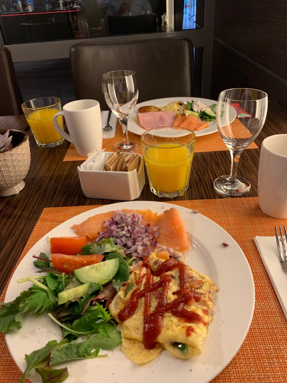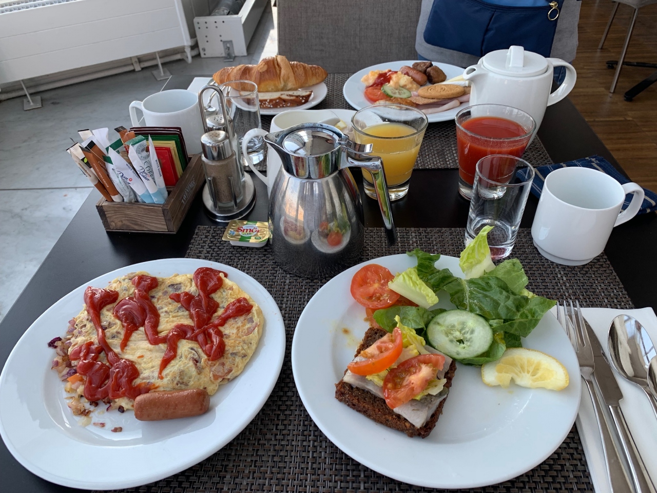 朝食は1階のダイニングでいただきましたが、北欧らしくニシンの酢漬けやスモークサーモンがあり、お酒をいただきたいくらいです。