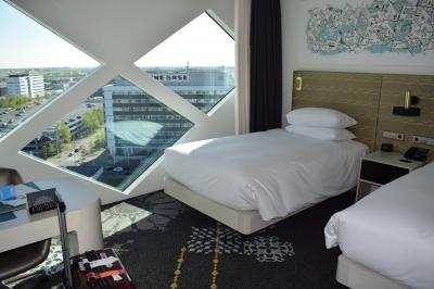 夕方アムステルダム到着だったので市内か空港か迷ったのですが、空港ホテルを選択しました。空港からは徒歩で10分弱。キューケンホフ公園行きバス乗り場まで5分です。3泊して、アムステルダム、ユトレヒト観光を楽しみました。やや面倒ですが苦にはなりませんでした。それよりも市内ホテルの狭さよりも綺麗で広さの点で良かったと思います。