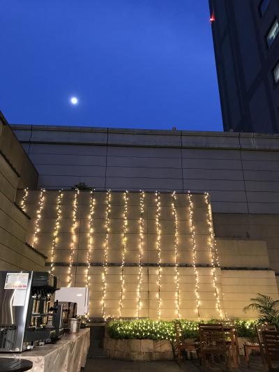中に入っているレストランで屋外で飲めるプランがあったので夕食をとりました。ホテルの中庭のような場所なので、寒い時期を除き楽しめると思います。