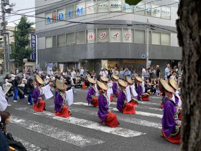 単身赴任している南浦和のマンションの前が西口会場。東口の2会場と合わせ、3会場で開催されています。本物のよさこい祭を見たことがないのですが、大音量をバックに若い人中心に構成されたチームが5分おきにやってきます。それなりに楽しめます。
