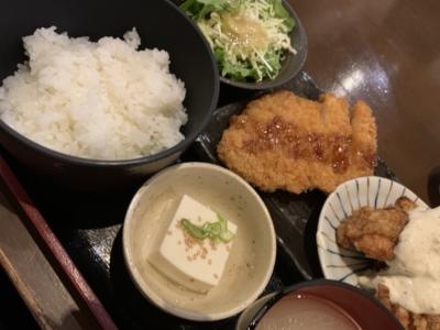 鳥の唐揚げと豚カツという贅沢な組み合わせ。
