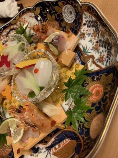 いつもはコースを頼むのですが、今回はアラカルト。枝豆、子持ち昆布等に続き、刺身の盛り合わせ。美しい盛り付けに感動。鰻の蒲焼を挟んで、和牛ステーキで締めました。たまにはアラカルトもいいモノです。- 旅行時期