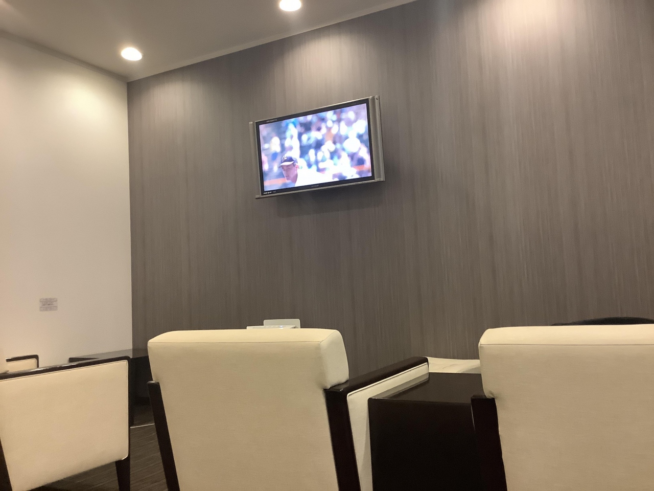長崎空港にはサクララウンジがありません。カードラウンジとなります。大分空港のように保安検査場後なら良いのですが、保安検査場前なのでなんとなく居心地悪いです。ただし、広々としていて今は甲子園野球を見ながらくつろいでいます。コーヒー、ジュースはあります。