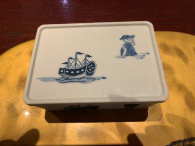 料理は高級長崎料理。前菜から始まりました。圧巻は、長崎名物の角煮マン。どの料理も本当に美味しかったです。接待の場なので写真をほとんど取れませんでしたが、刺身の器だけ長崎らしく撮影させてもらいました。