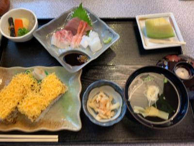仕事が終わって昼食で利用しました。お刺身定食2850円をいただきました。地の刺身、煮物、茶碗蒸しに加えて、角寿司。巻き寿司に具がご飯に混ざっていて、四角く整形した上に錦糸卵を載せたものでした。可もなく不可も無しの定食でした。