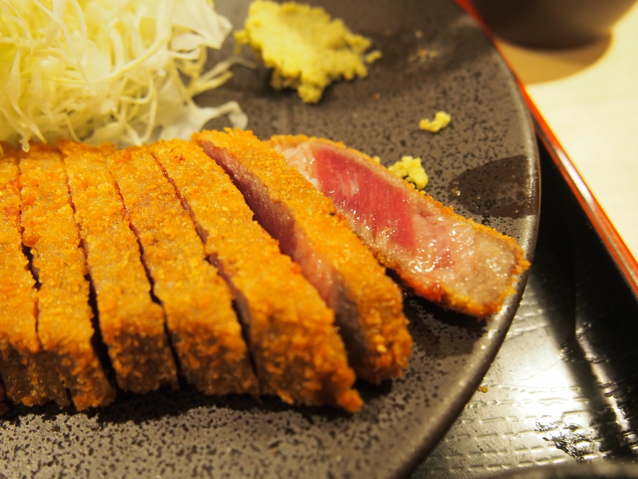 地元では牛肉のカツはあまりないので、レアの牛肉とサクサクの衣は珍しく美味しく楽しめました。