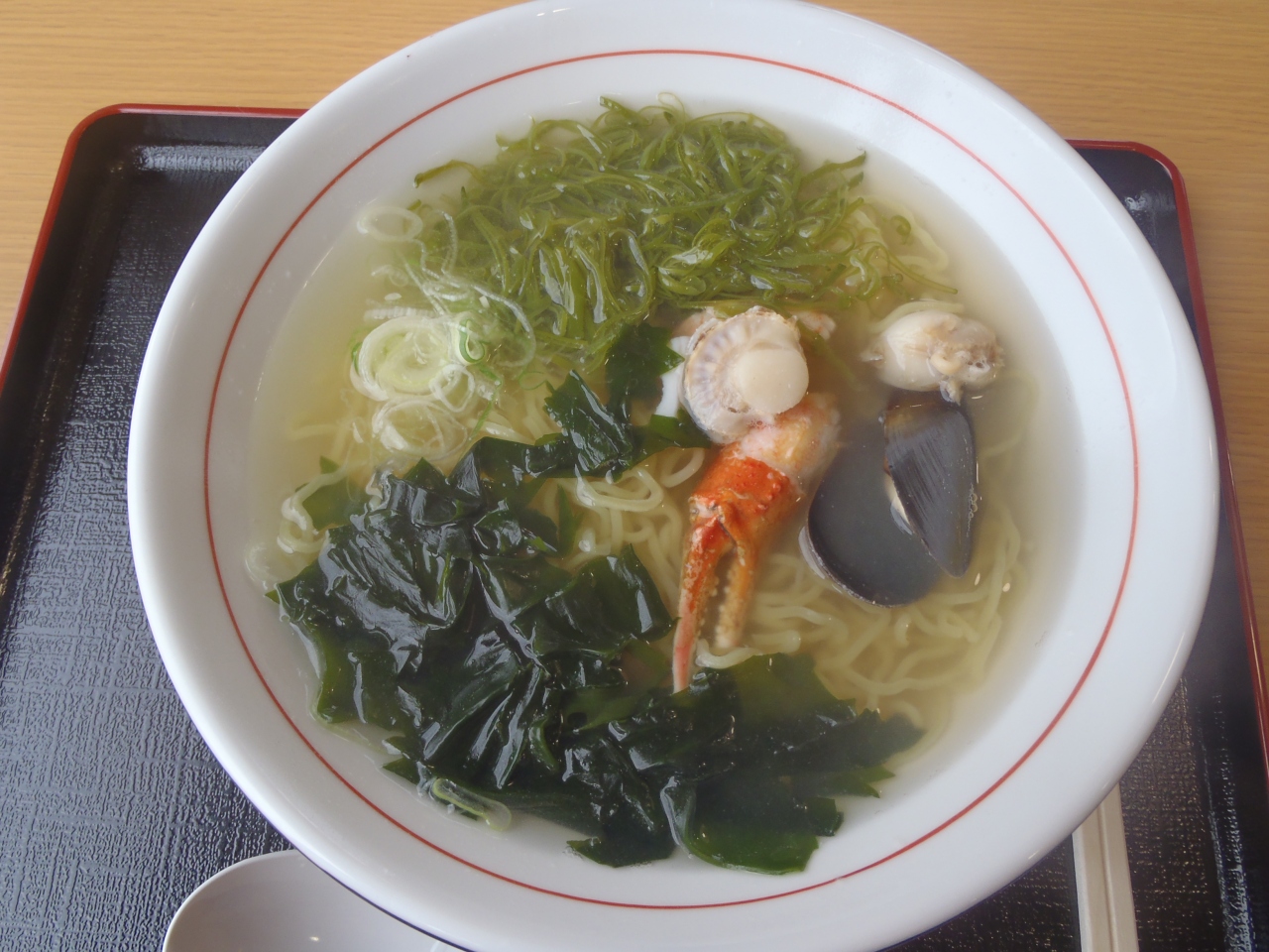 磯ラーメンをいただきました。ムール貝・エビ・ホタテなどがのっています。
