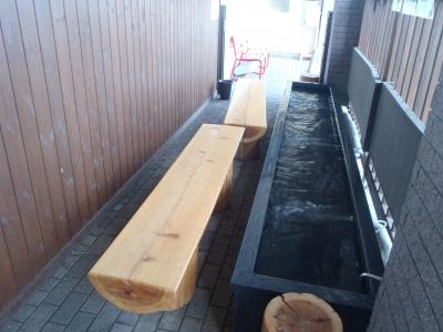 物産館の入口に足湯がありました。若干、位置が高いように思われましたが・・。