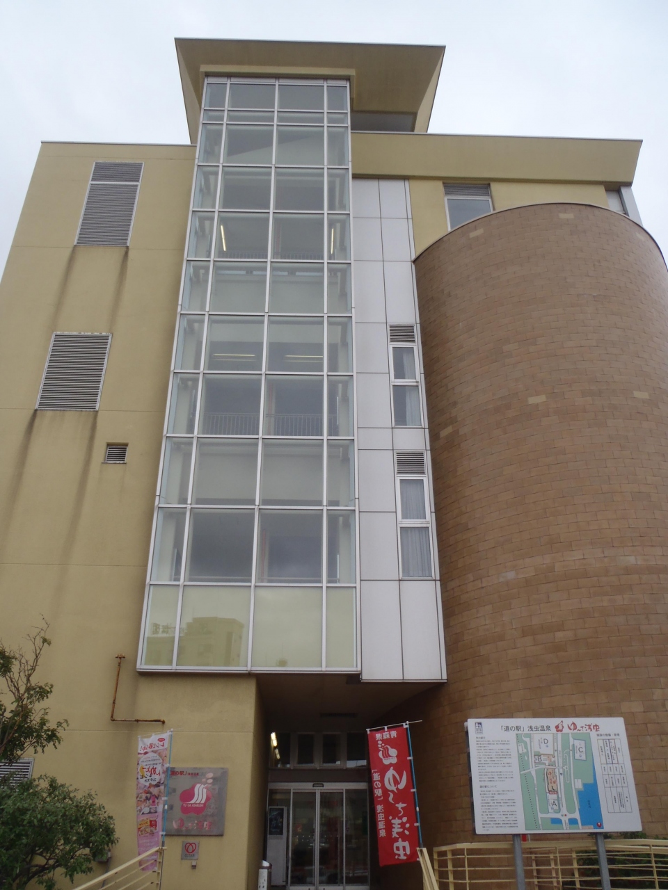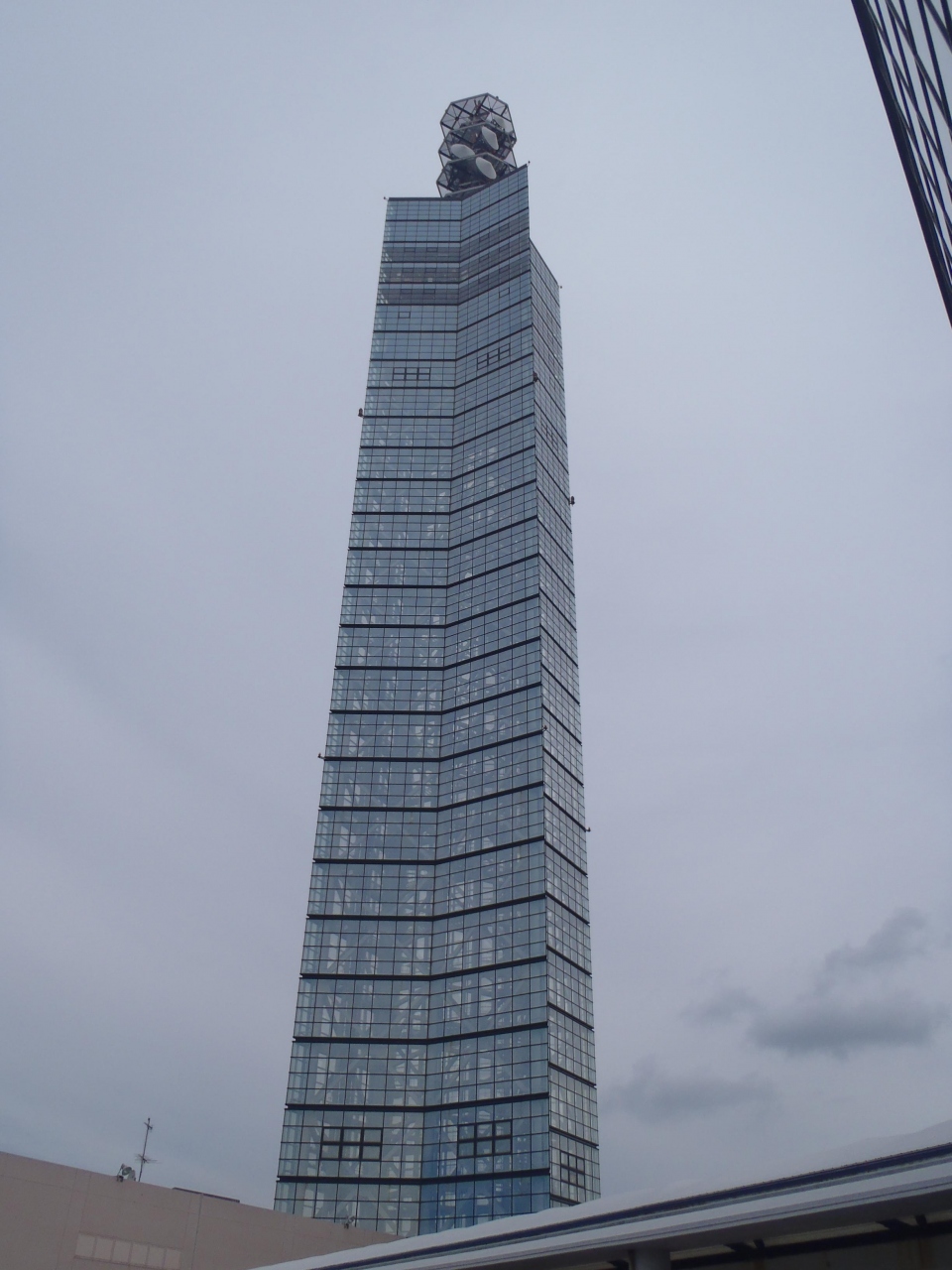 秋田港の目の前にそびえるガラス張りのタワーです。
