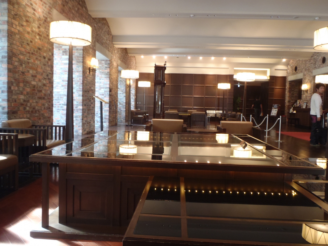 部屋は和洋室でした。部屋の真ん中の畳にベッドがドーンという変わった配置の部屋ですが、窓側にソファと窓に面してカウンターがあり、部屋でお酒を飲みながら景色を楽しむにはとてもよかったです。