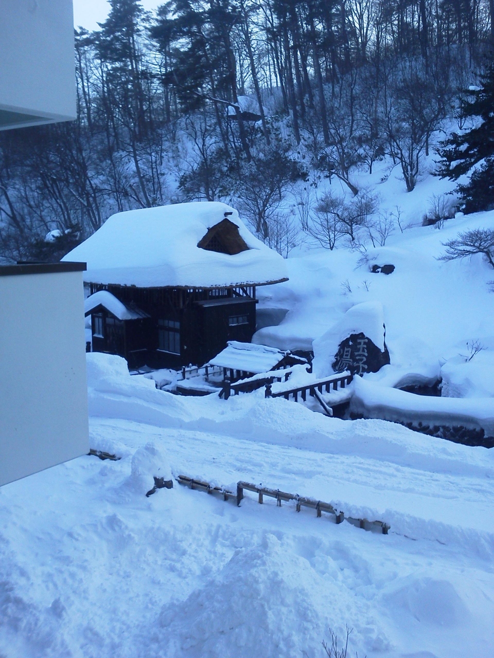 露天風呂は、内風呂と繋がっておらず、一度外に出てから(寒い思いをして)行くのですが、夜などは雪と照明で幻想的な感じでした。