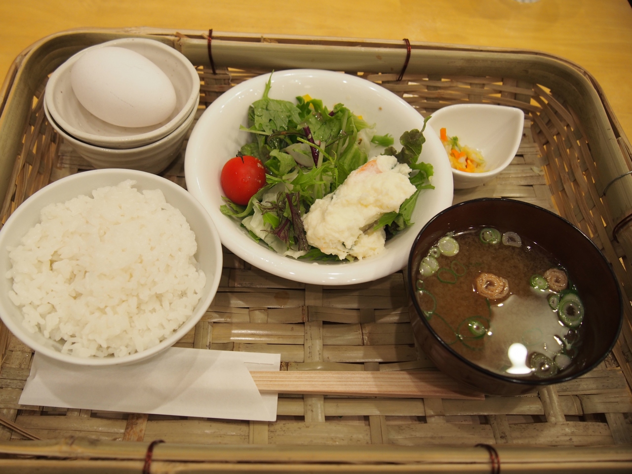 卵かけご飯にしていただきました。サラダのドレッシングがおいしかったです。