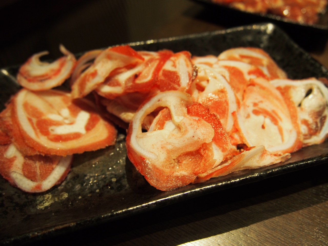 今まで食べたことのある塩味のホルモンは「塩だれ」でしたが、こちらは特製の塩がふってあるもの。焼いてもあまり網が焦げ付きません。
