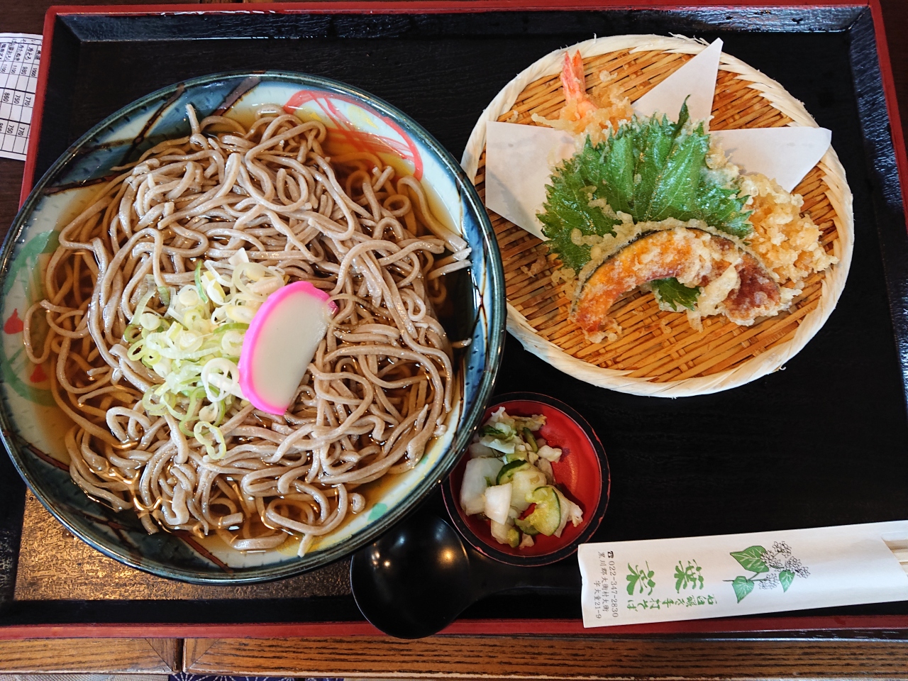 石臼挽きの冷汁 天ぷらそばを注文。