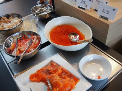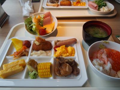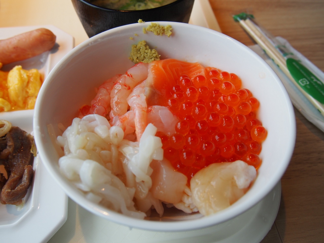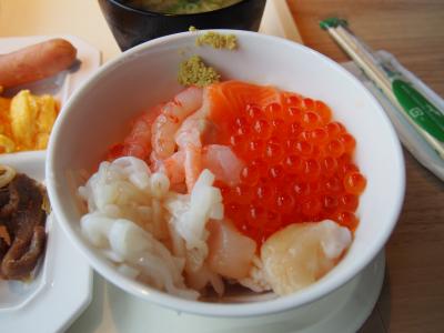 朝食は北海道の名物が多く、自分で海鮮丼も作れて満足でした。