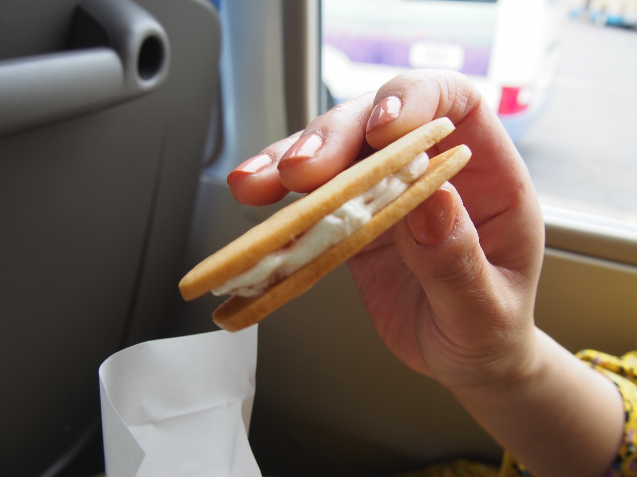 焼きたてケーキとリンゴクリームを挟んだクッキーを購入。