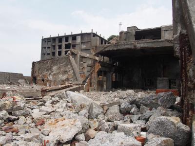 「廃墟」というにふさわしい景色が広がっています。人が捨てた、建物たち。